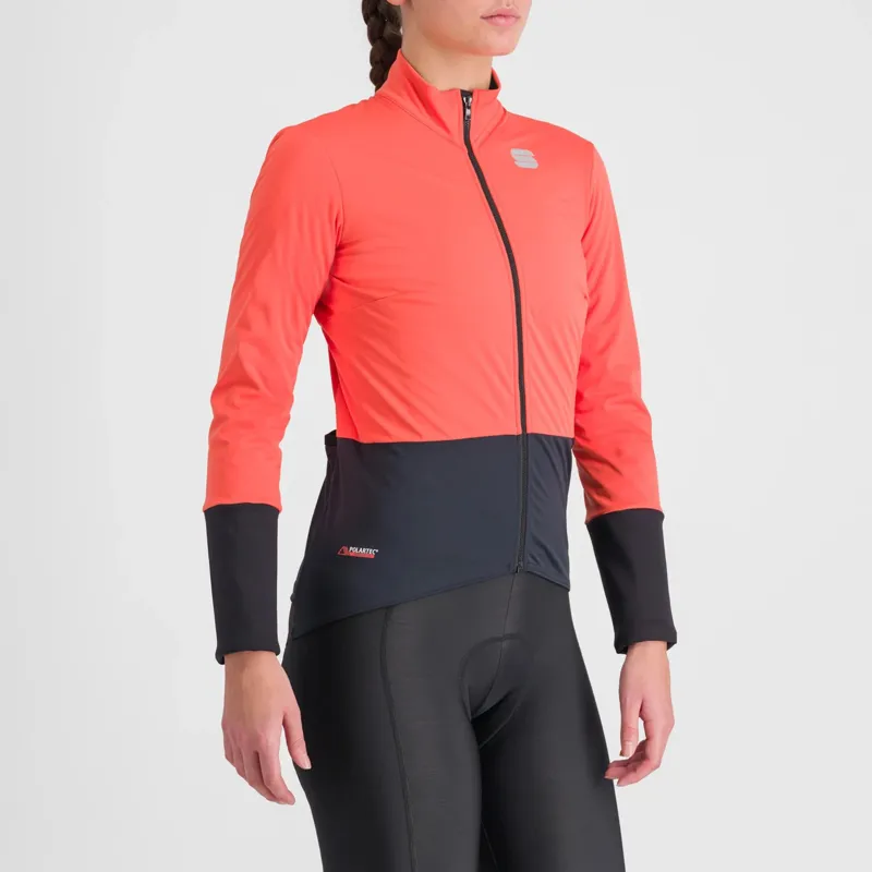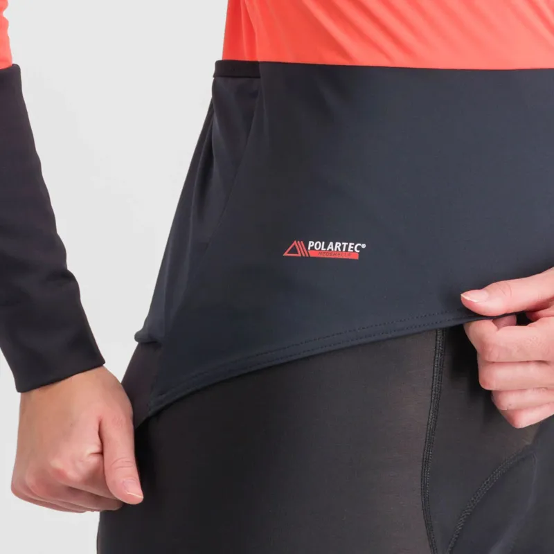 The women’s cycling jacket protects you from the elements with an external shell made entirely from Polartec® NeoShell® whilst greater warmth and breathability are achieved with a Polartec® Alpha® Direct lining. A durable water-repellent treatment is used on the tail and cuffs for extra protection. A zippered pocket on the chest keeps essentials close to hand.